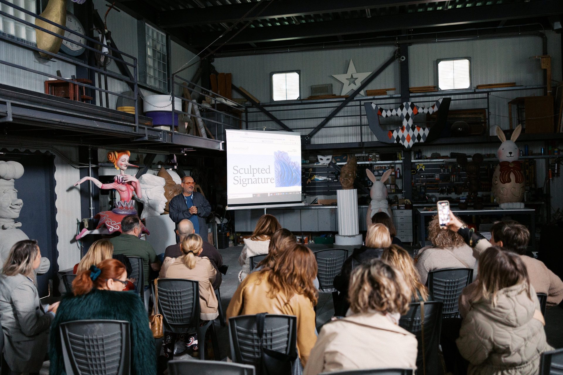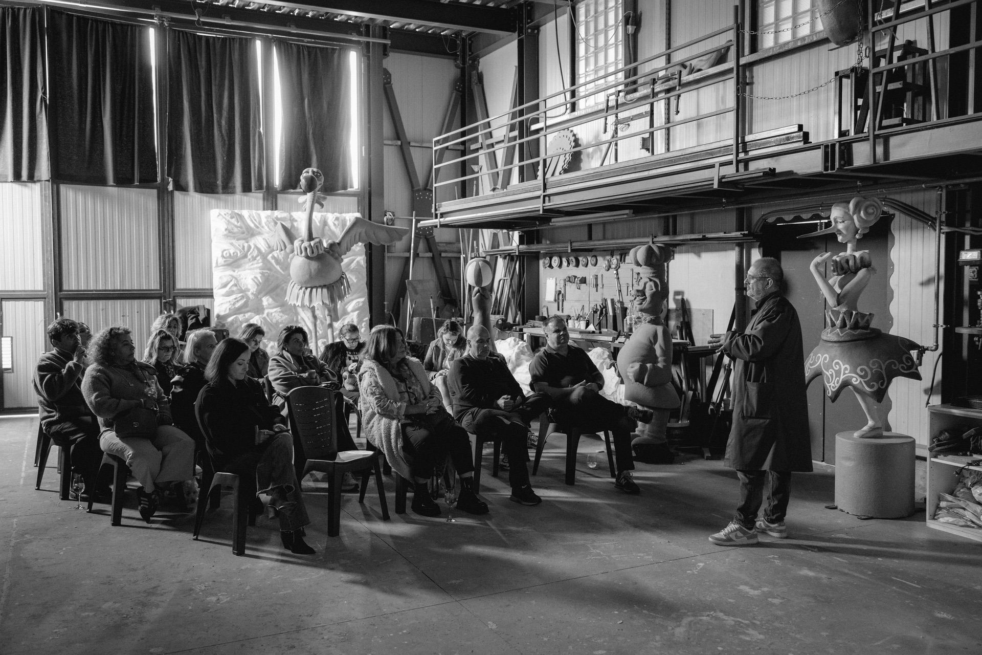 Ακολούθησε επίσκεψη στο καρναβαλικό εργαστήρι, της ομάδας asteriscos όπου συνδέεται άμεσα με την πολιτιστική ταυτότητα της Πάτρας. Αυτή η ενσωμάτωση τοπικών στοιχείων σε ένα wedding itinerary αποτελεί βασικό ζητούμενο για τους σύγχρονους destination clients που αναζητούν αυθεντικότητα.